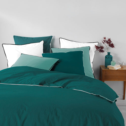 Lenjerie de pat din bumbac Ranforce, Aqua Petrol / Gri, 160 x 220 cm