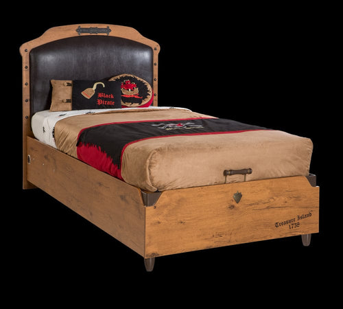 Pat din pal, rabatabil cu lada de depozitare si tablie tapitata cu piele ecologica, pentru copii Pirate Maro, 20...