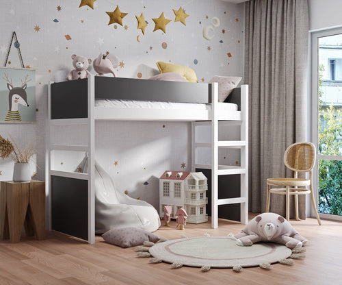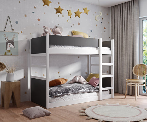 Pat supraetajat din lemn de pin si pal, pentru copii Enzo, 200 x 90 cm