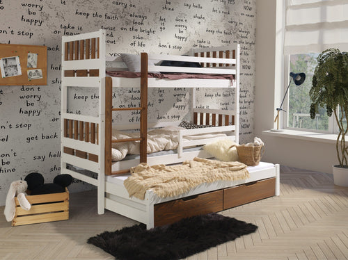 Pat supraetajat transformabil din lemn de pin, cu 2 sertare pentru copii Bartosz, 200 x 90 cm