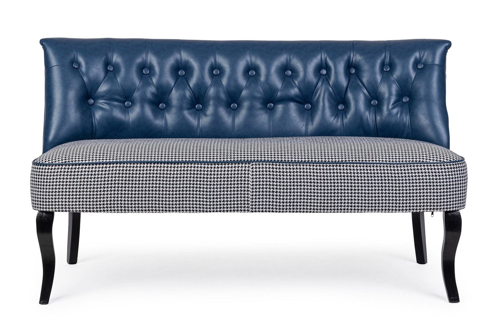 Canapeaua este tapitata cu stofa si piele ecologica.