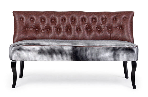 Canapeaua este tapitata cu stofa si piele ecologica.