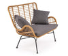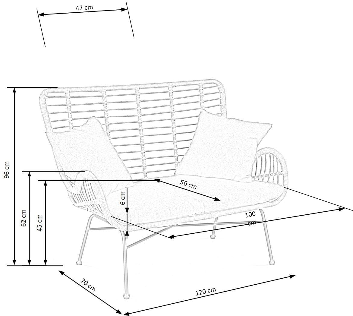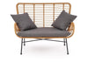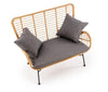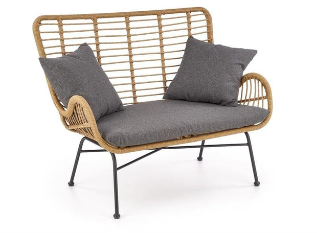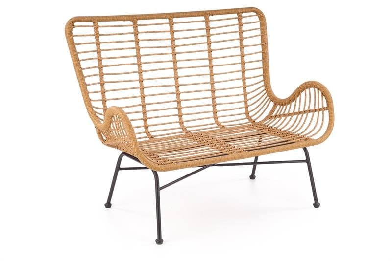 Canapeaua este realizata din ratan sintetic si are picioarele din metal.