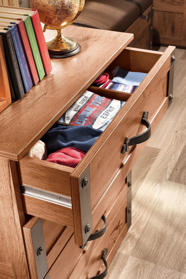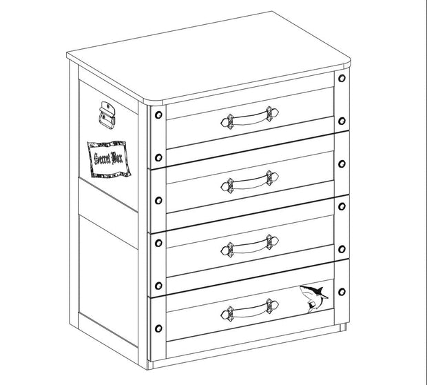 Comoda cu 4 sertare Pirate imbina armonios estetica, functionalitatea si rezistenta.