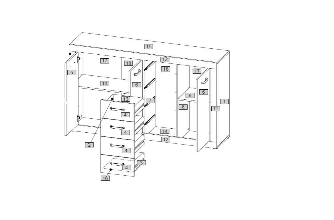 Comoda cu 4 sertare si 3 usi Inez reprezinta o piesa de mobilier atemporala, usor de integrat in interiorul locuintei.