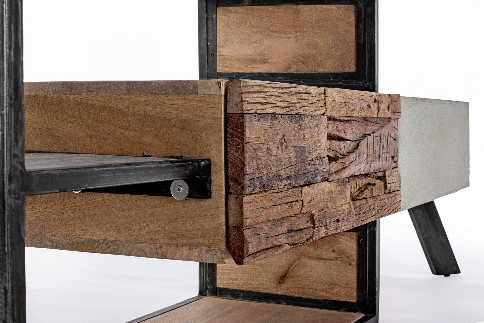 Produsul este realizat din lemn de mango, lemn reciclat, pal si metal.