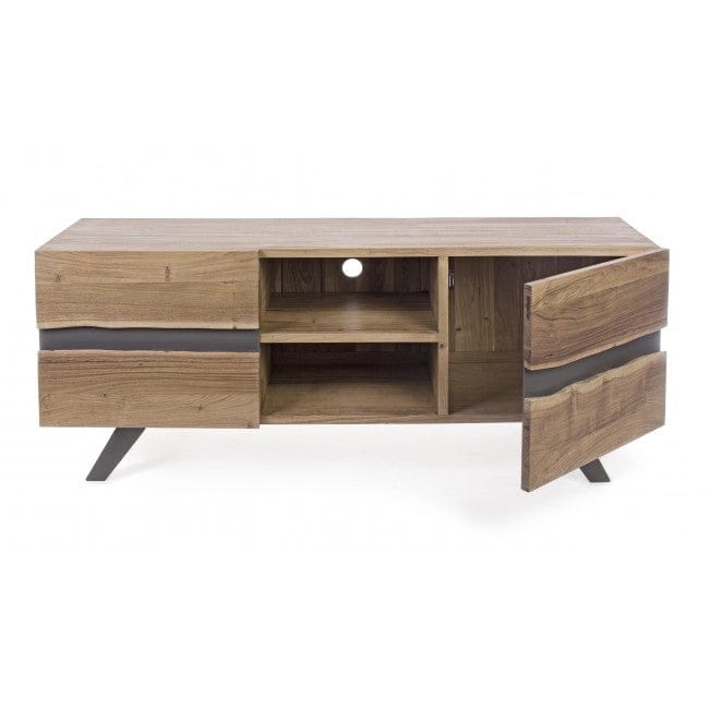 Comoda TV Aron impresioneaza prin designul original. Forma simpla si subtila caracterizeaza aceasta colectie. Interiorul casei dumneavoastra va fi admirat de cei care indragesc liniile bine definite, simplitatea formelor dar si functionalitatea acestora.