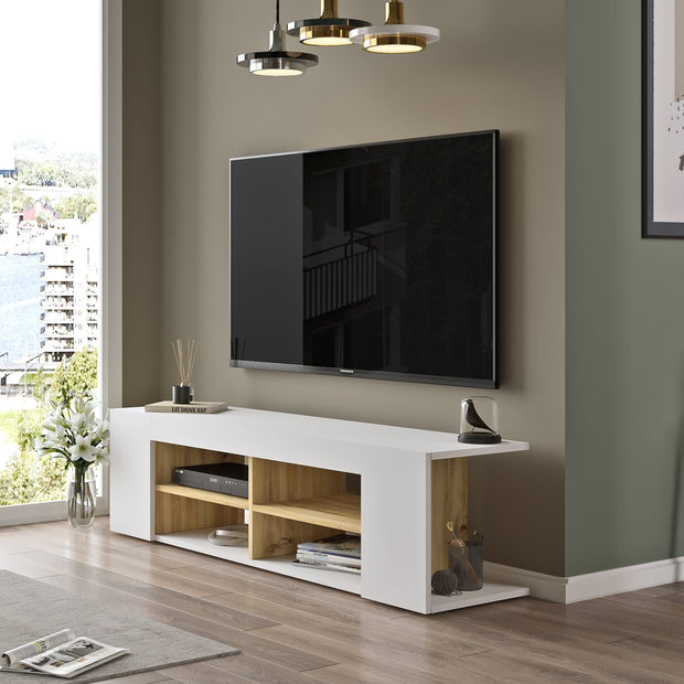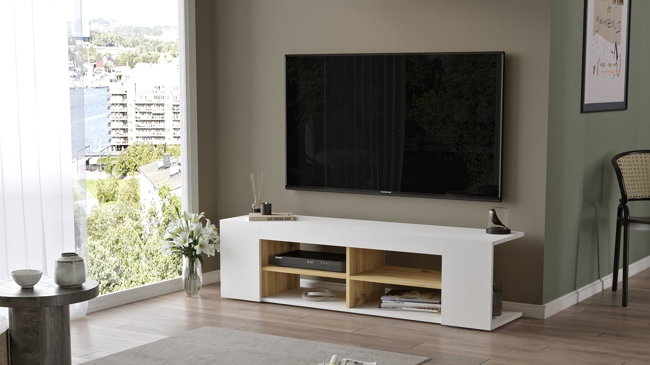 Comoda TV Luvio se integreaza perfect in locuinta dumneavoastra si creeaza un puternic efect vizual. Interiorul casei dumneavoastra va fi admirat de cei care indragesc liniile bine definite, simplitatea formelor dar si functionalitatea acestora.
