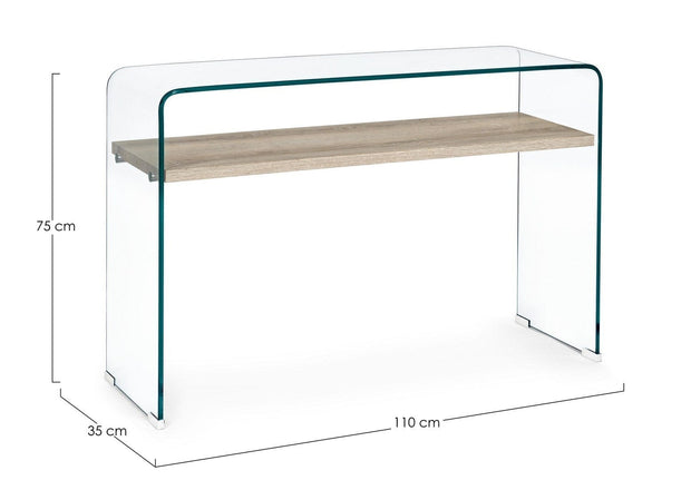 Consola este realizata din sticla (12 mm grosime) si MDF melaminat.