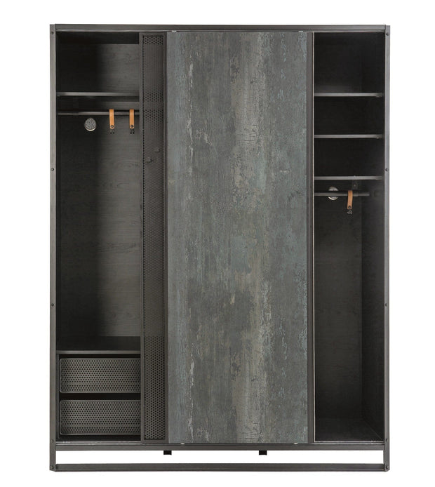 Dulap din pal cu 2 usi glisante pentru tineret Dark Metal Black / Graphite, imbina armonios estetica, functionalitatea si rezistenta.