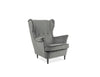 Fotoliul este tapitat cu stofa si are picioarele din lemn.