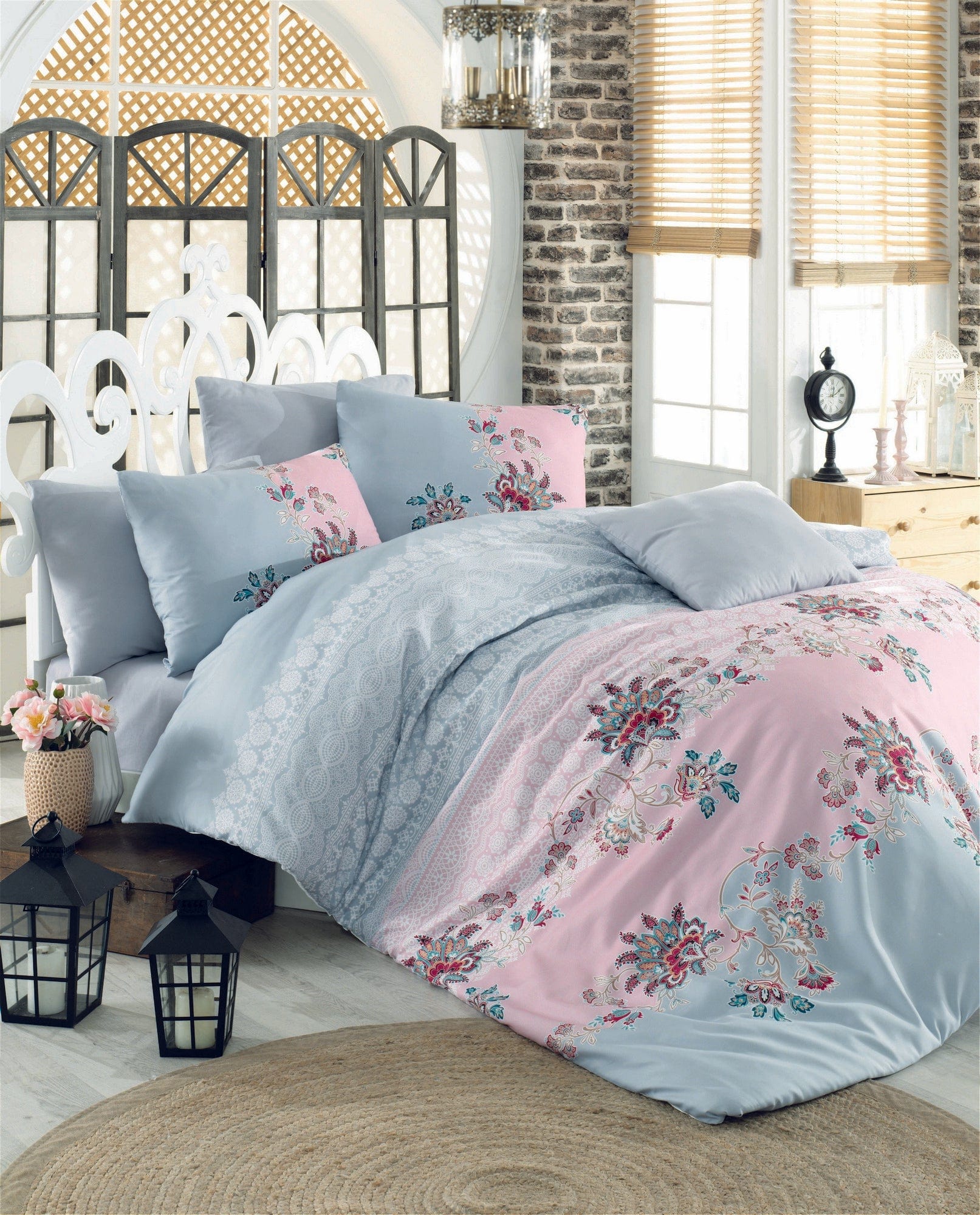 Lenjerie de pat din bumbac, Azra Bleu / Multicolor, 200 x 220 cm