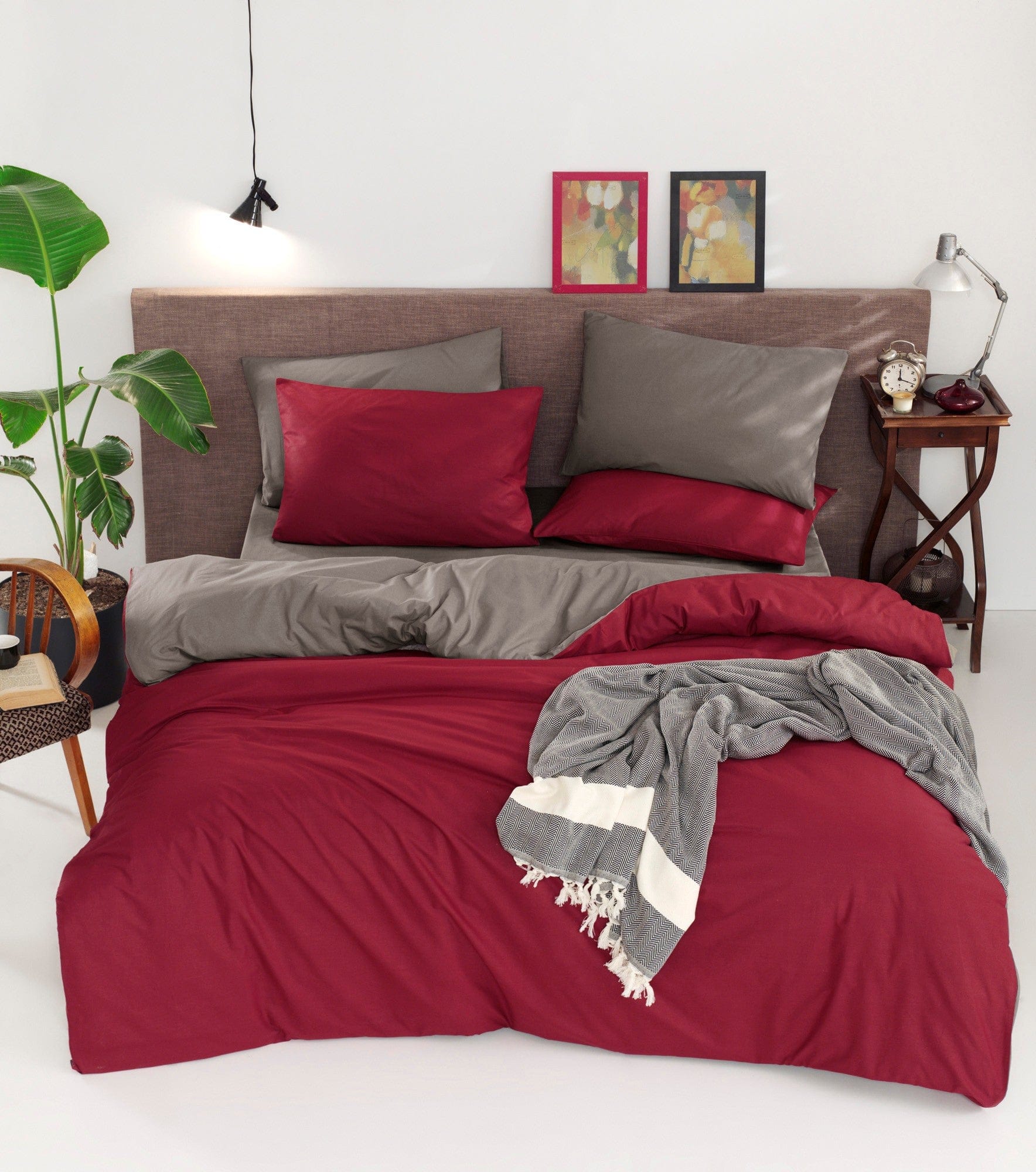 Lenjerie de pat din bumbac, Duplex Burgundy / Gri, 200 x 220 cm
