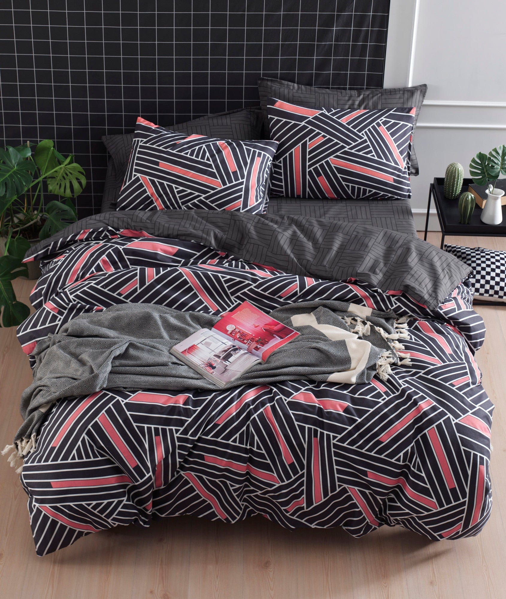 Asternuturile potrivite au puterea de a modifica intreg aspectul dormitorului. Rolul estetic ofera o ambianta placuta, in ton cu atmosfera relaxanta din orice dormitor. Husa pilota: 200 x 220 cm Fata de perna: 50 x 70 cm (2 buc) Modalitatea de inchidere fete perna: tip plic Modalitatea de inchidere husa pilota: cu nasturi