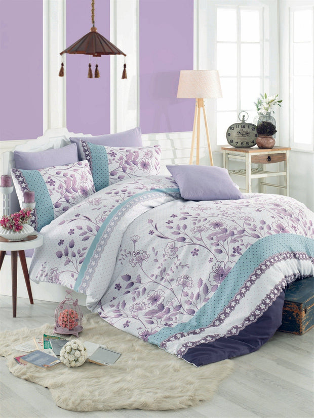 Lenjerie de pat din bumbac, Sudenaz Lila / Multicolor, 160 x 220 cm