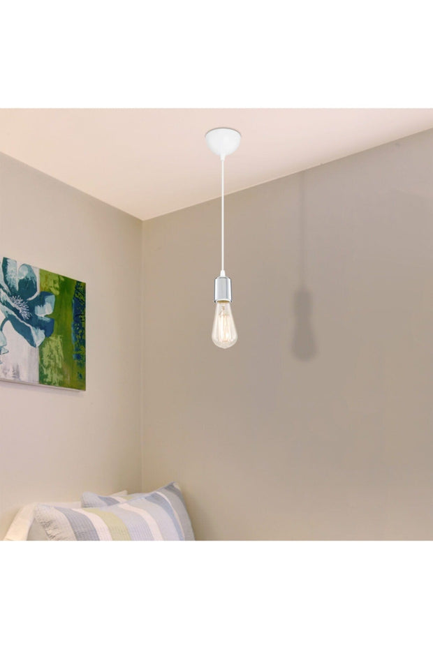 Lustra Dekoratif Alb / Crom impresioneaza prin design. Modelul sau unic ofera o nota de eleganta si un plus de confort locuintei.