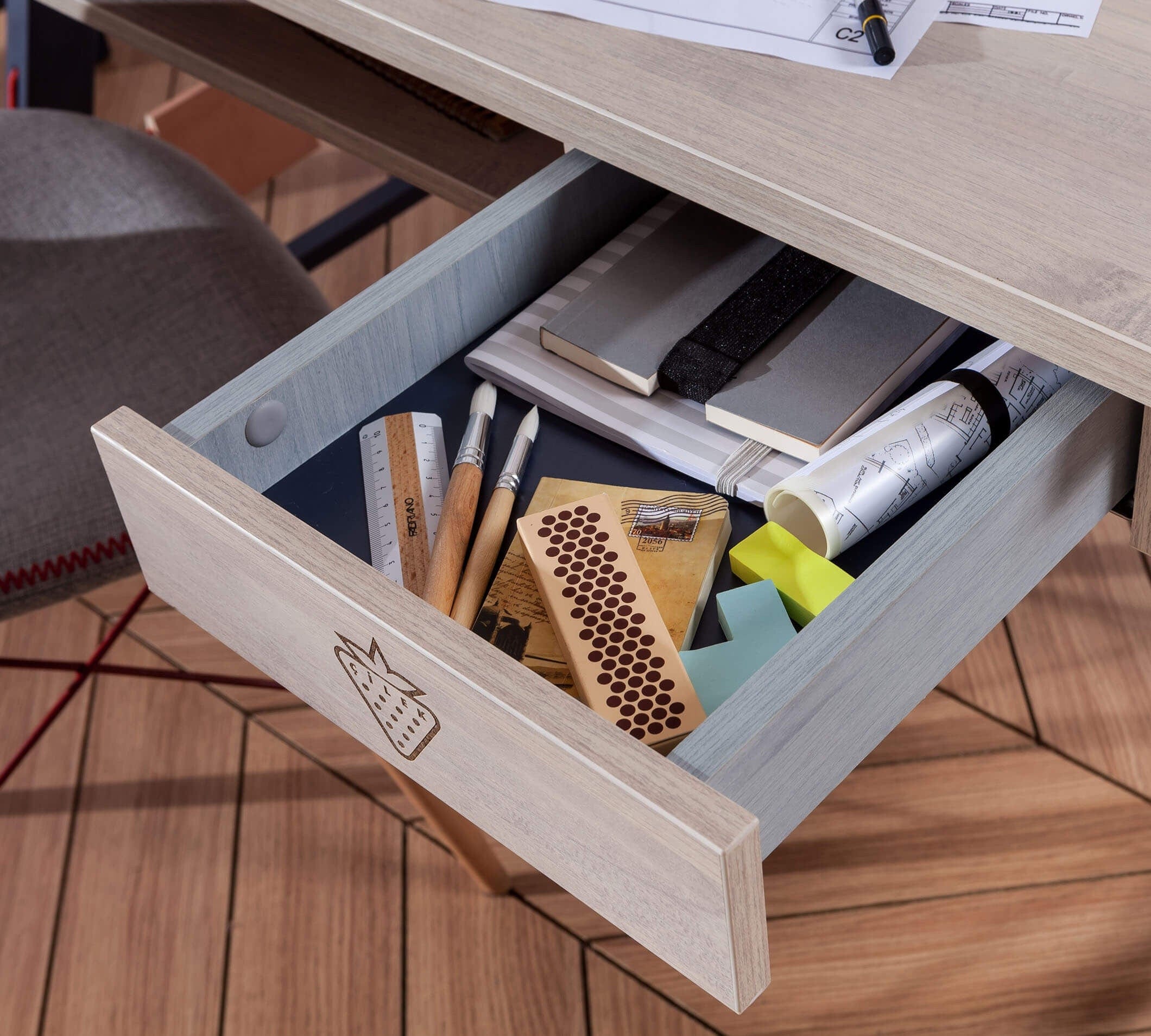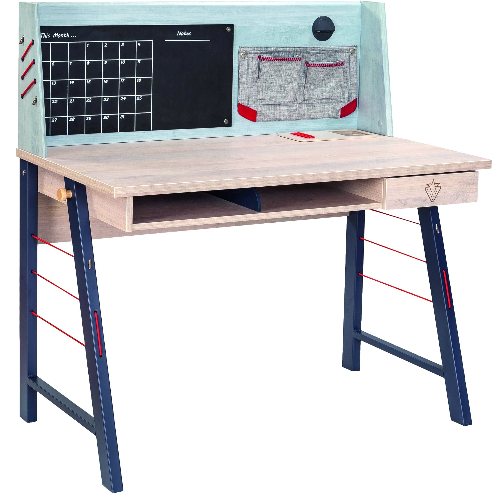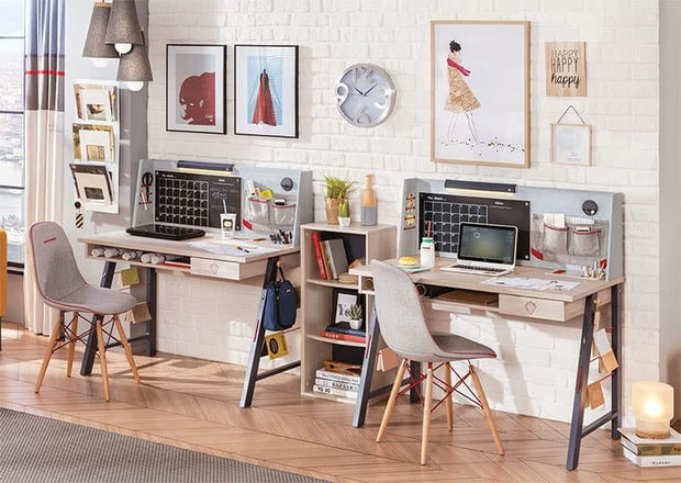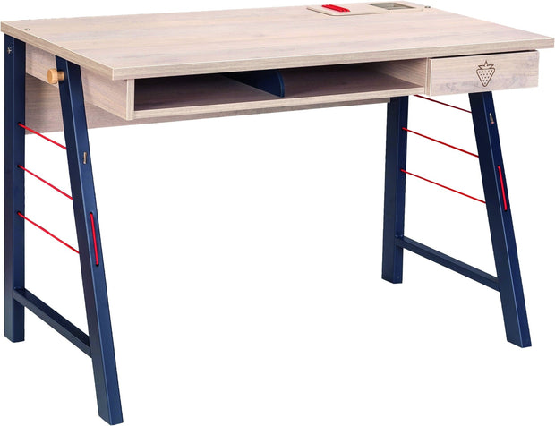 Masa de birou din pal si metal pentru tineret, baieti 12-24 ani, Trio Natur / Blue, imbina armonios estetica, functionalitatea si rezistenta.