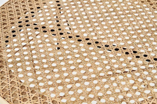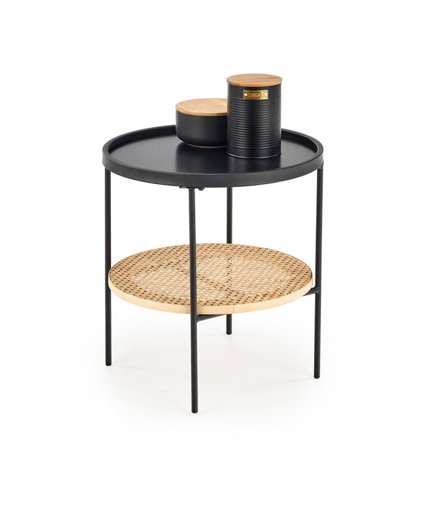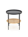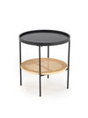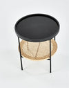 Masa de cafea este realizata din MDF laminat, ratan natural si metal.