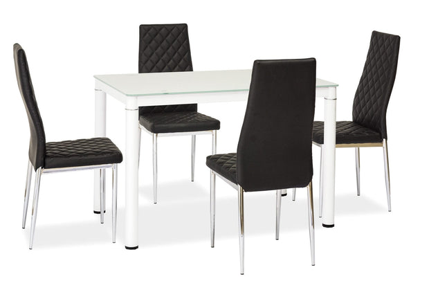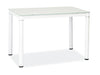 Blatul este realizat din sticla securizata, iar picioarele sunt din metal.