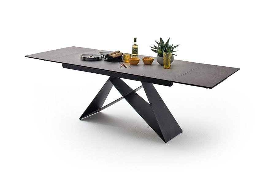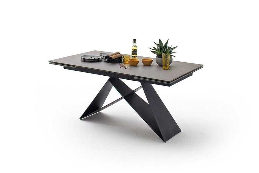 Blatul mesei este realizat din ceramica si sticla securizata, iar cadrul si picioarele sunt din metal.