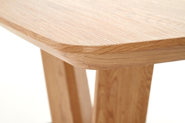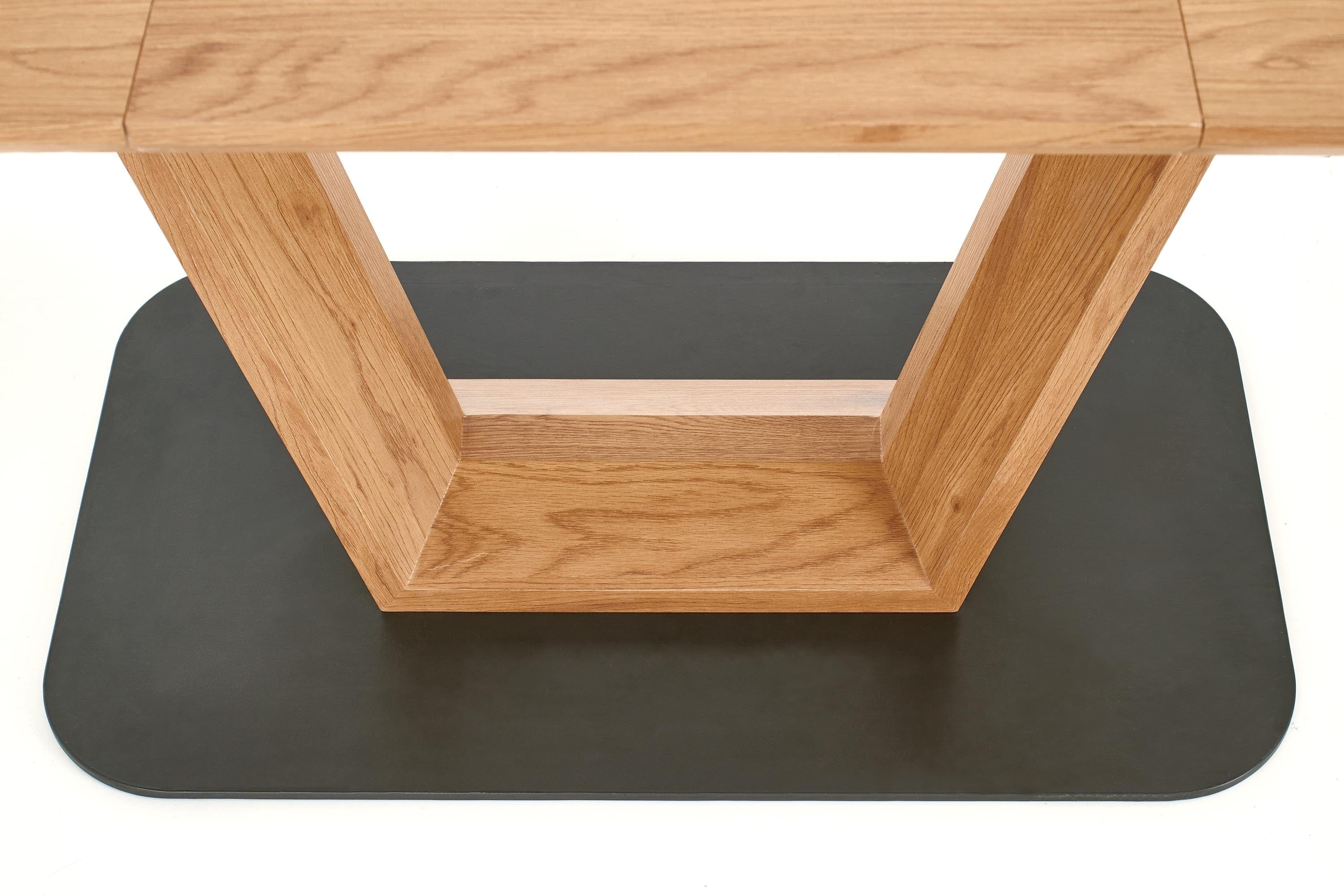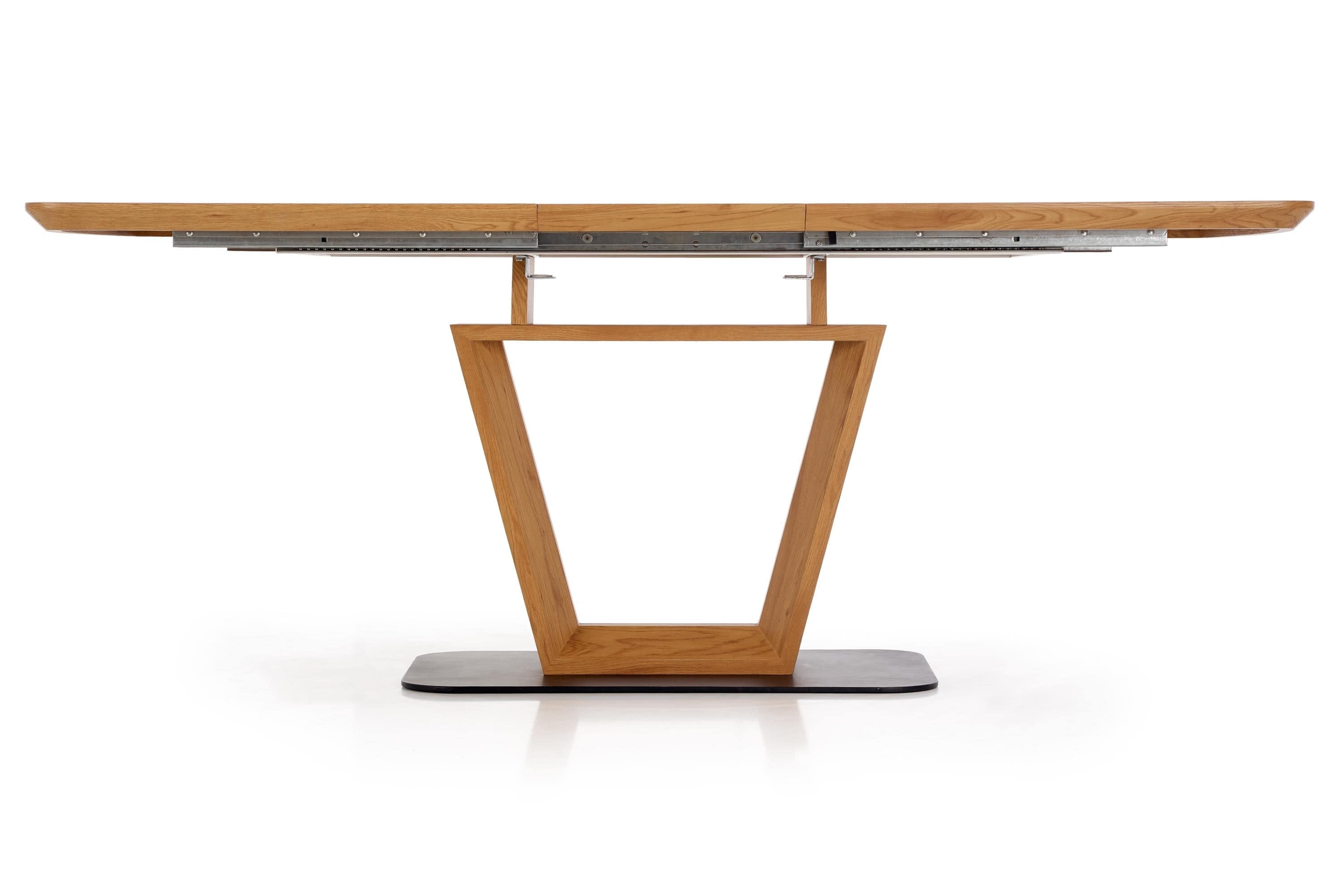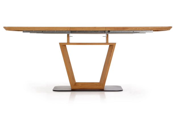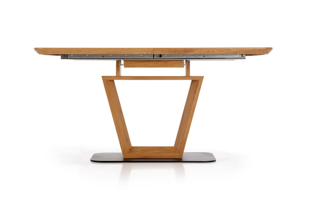 Masa este foarte grea si solida, abia am pus-o pe pozitie 2 persoane. Acesta este un aspect pozitiv, pentru ca altfel platforma din mijloc pe care sta nu ar avea stabilitate. O recomand cu caldura. Se extinde foarte usor. Singurul aspect mai putin placut, dar nu foarte deranjant este ca din profil se vede structura metalica vopsita alb de sub blat.