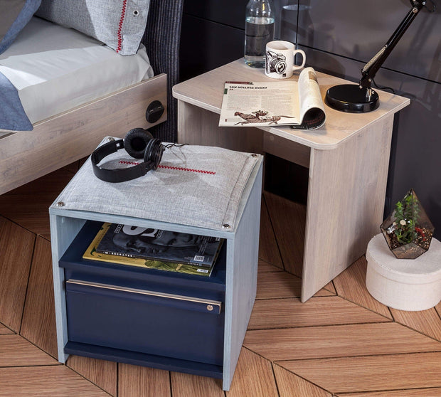 Noptiera multifunctionala din pal pentru tineret, baieti 12-24 ani, Trio Natur / Blue, imbina armonios estetica, functionalitatea si rezistenta.
