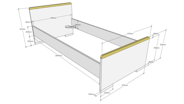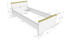 Pentru saltea 200 x 90: Lungime: 205 cm, Latime: 97,5 cm, Inaltime capatai: 76,1 cm