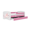 Pentru saltea 140 x 70 cm: Lungime totala: 144 cm, Latime totala: 80 cm, Inaltime capatai: 61 cm, Greutate: 39,3 kg, Varsta recomandata: 3-5 ani