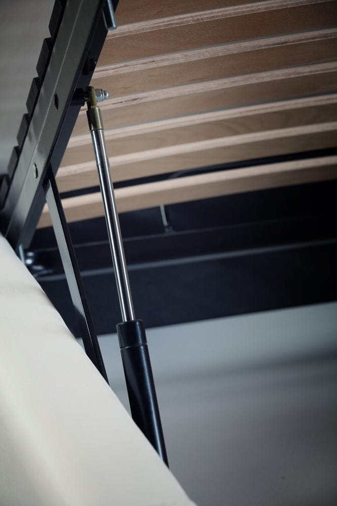 Contine suport de saltea rabatabil, cu acces in lada de depozitare.