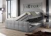 Box-ul este realizat din lemn si pal, tapitat cu stofa si arcuri Bonell cu 4 spire si un strat de spuma T25 cu grosime de 1 cm.