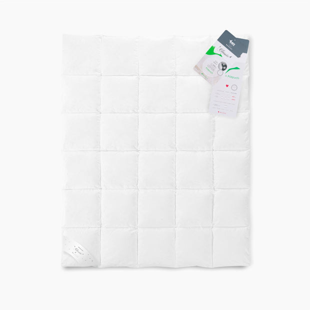 Metodele traditionale de productie, tesatura foarte groasa si umplutura din pene si puf de gasca asigura un confort deosebit si durabilitate in utilizare.