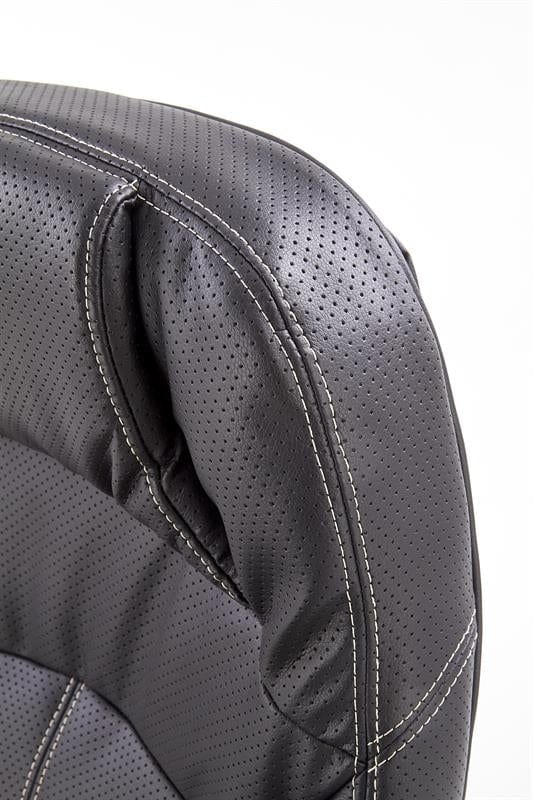 Scaun de birou ergonomic tapitat cu piele ecologica rezistenta, usor de intretinut si curatat. Inaltime reglabila cu piston pe gaz si manere pentru un plus de confort.