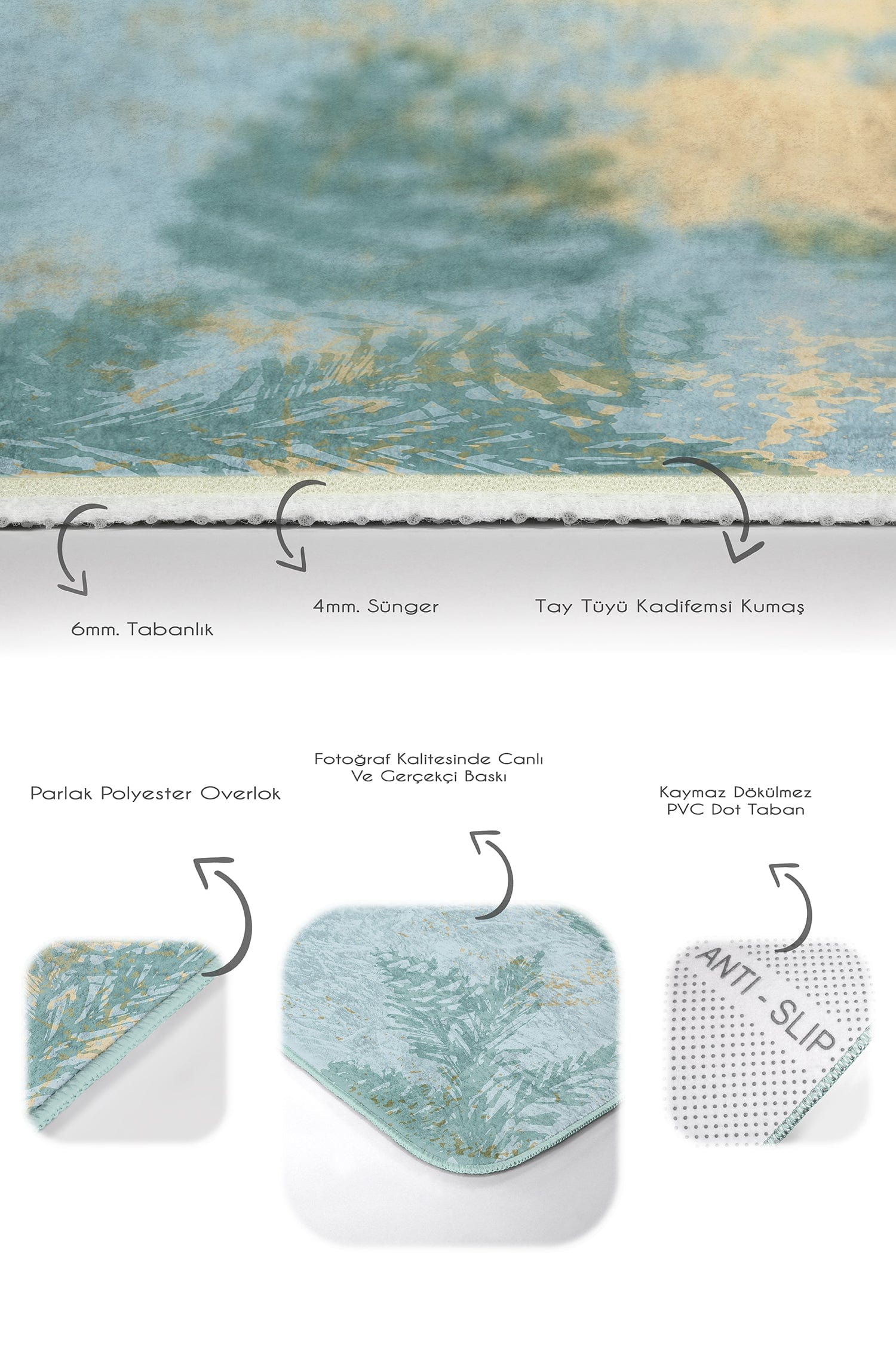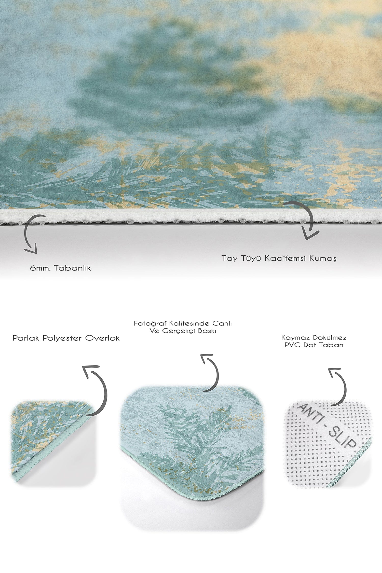 Covorasul de baie din colectia Damla BPS249 Rectangle impresioneaza prin designul fin si modern, culori placute si indraznete. Vor completa perfect decorul, vechea baie devenind mai calda si plina de imaginatie. Covorasul are un strat antiaderent, pentru o siguranta sporita in baie.