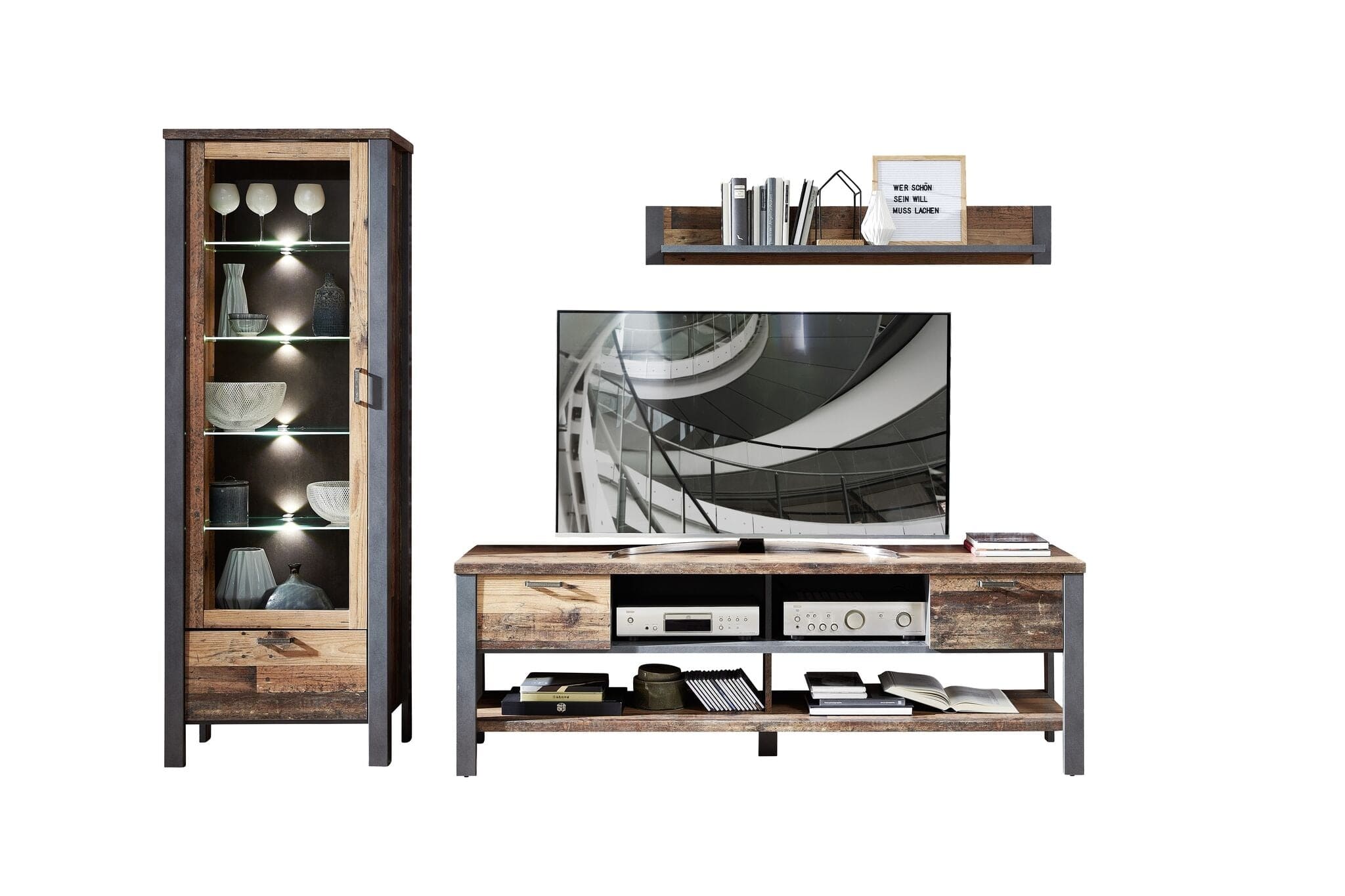 Setul de mobila de living Chelsea II Natural / Grafit se potriveste in orice locuinta, fiind un set elegant cu personalitate.
