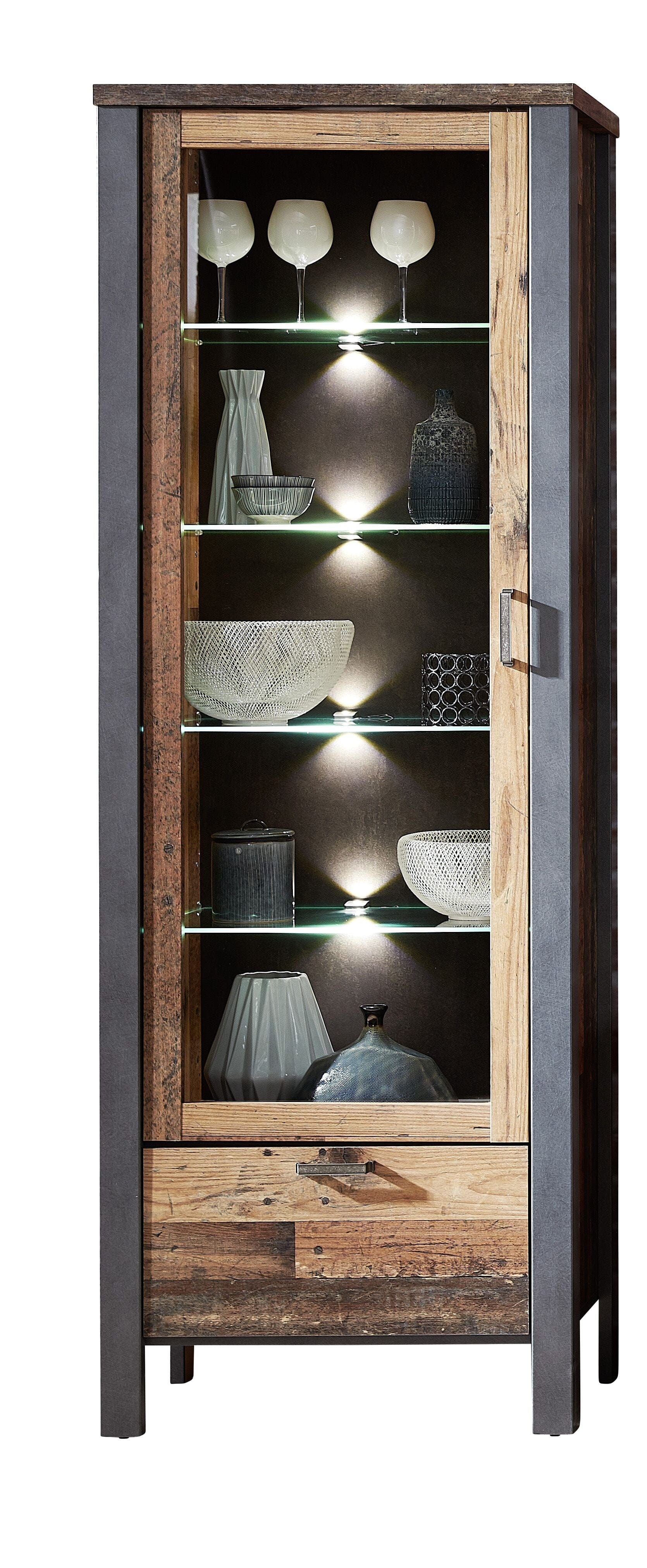- 1 Vitrina din pal, cu 1 usa si 1 sertar Chelsea, dimensiuni: latime: 69 cm, adancime: 40 cm, inaltime: 194 cm, greutate: 63 kg