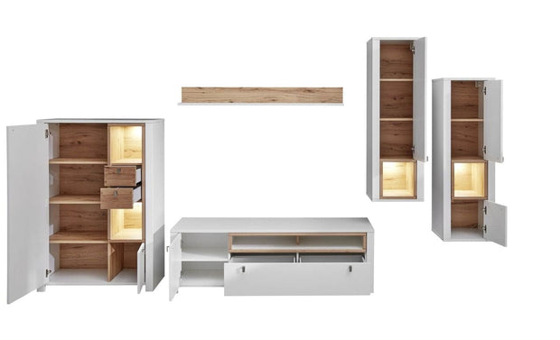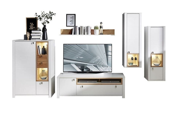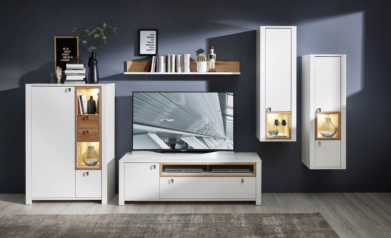 luciul mobilierului si marginile rotunjite ale fronturilor. Selina se potriveste in orice living, fiind o colectie simpla, dar cu personalitate.