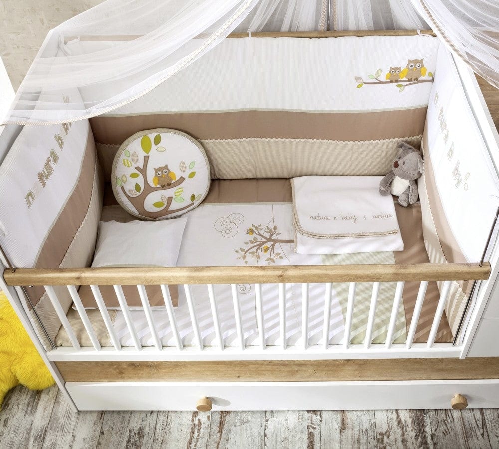 Set lenjerie pentru patut bebe 9 piese Natura Baby, 75 x 115 cm