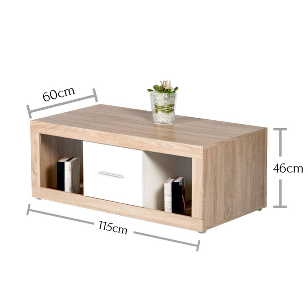 -1 Masa de cafea din pal, cu 1 sertar Cannes Stejar Sonoma / Alb, lungime: 115 cm, latime: 60 cm, inaltime: 46 cm, greutate: 34 kg