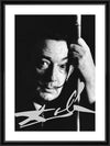Folie metalică aplicată pe hârtie imprimată, ramă lucioasă neagră, passepartout alb, agăţători metalice.
