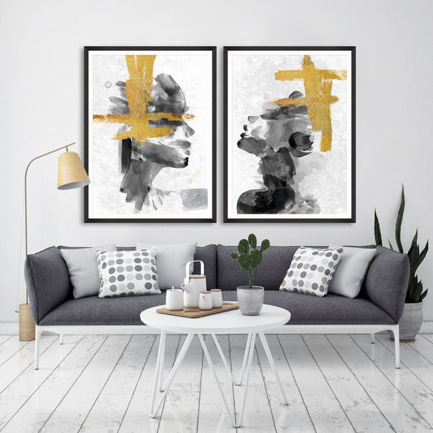 Seria de tablouri Attitude I si II arata minimalist si elegant in acelasi timp, pe peretele de deasupra canapelei. Sunt ft multumita de alegerea facuta! Partea aurie a tabloului luceste in lumina oferind un aspect glamorous!
