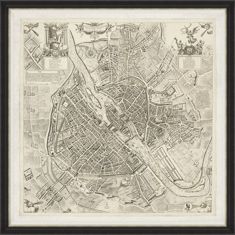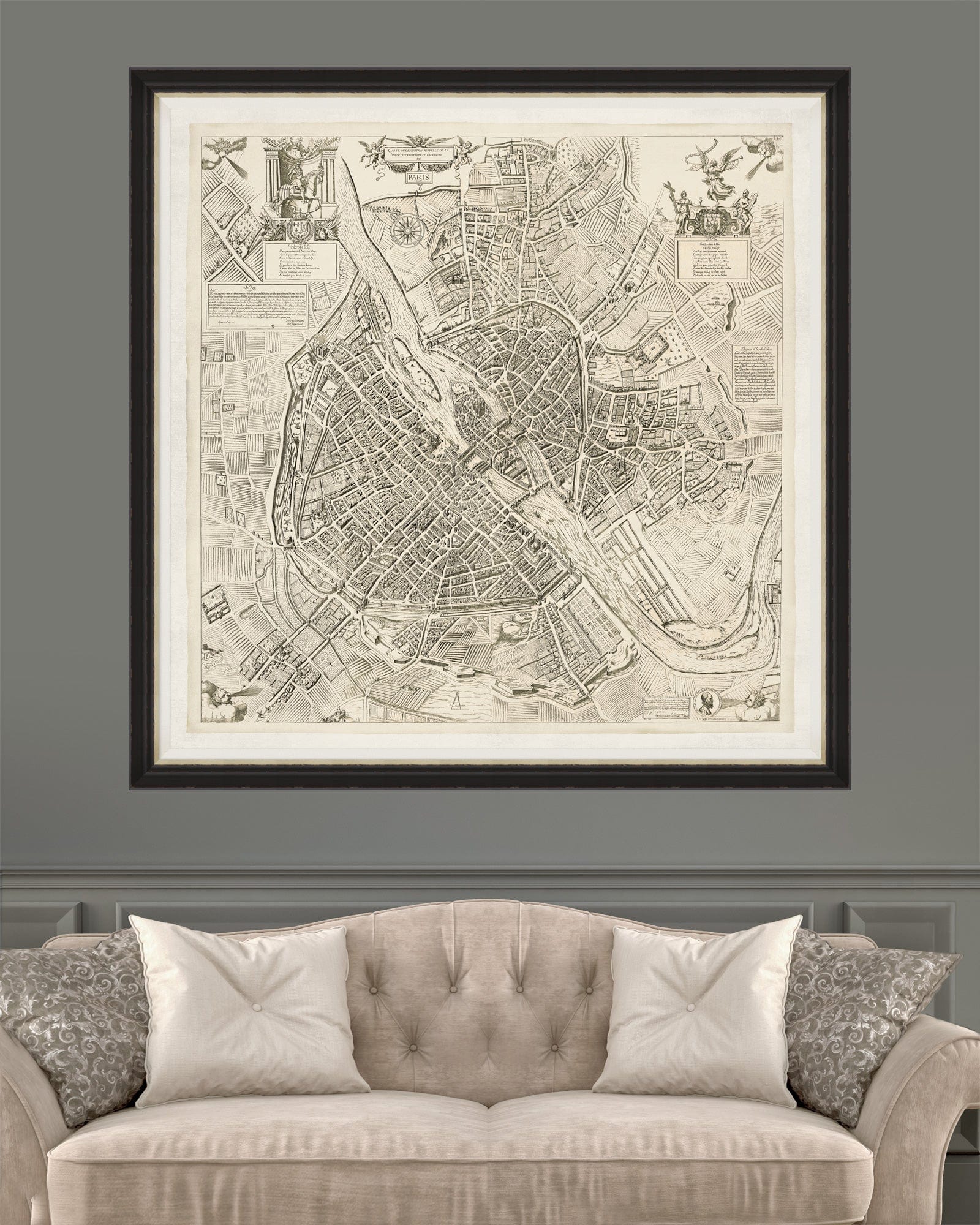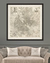 Poster imprimat pe hârtie embosată, ramă vintage neagră, agăţători metalice.
