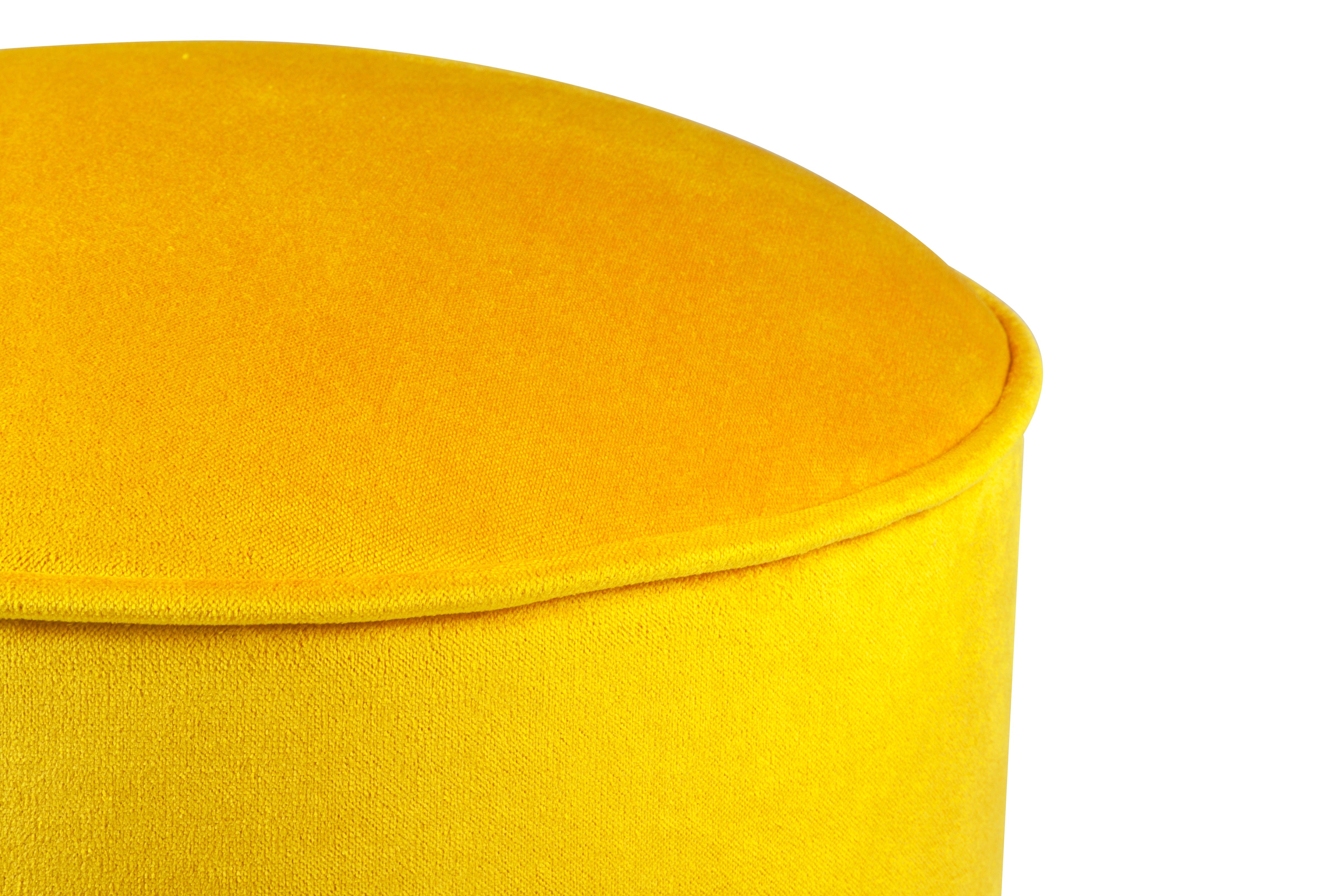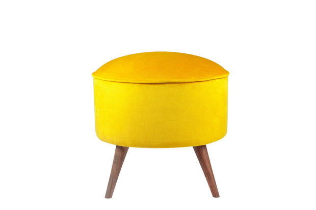 Taburet tapitat cu stofa si picioare din lemn, Buena Park Galben / Maro, l45xA45xH43 cm