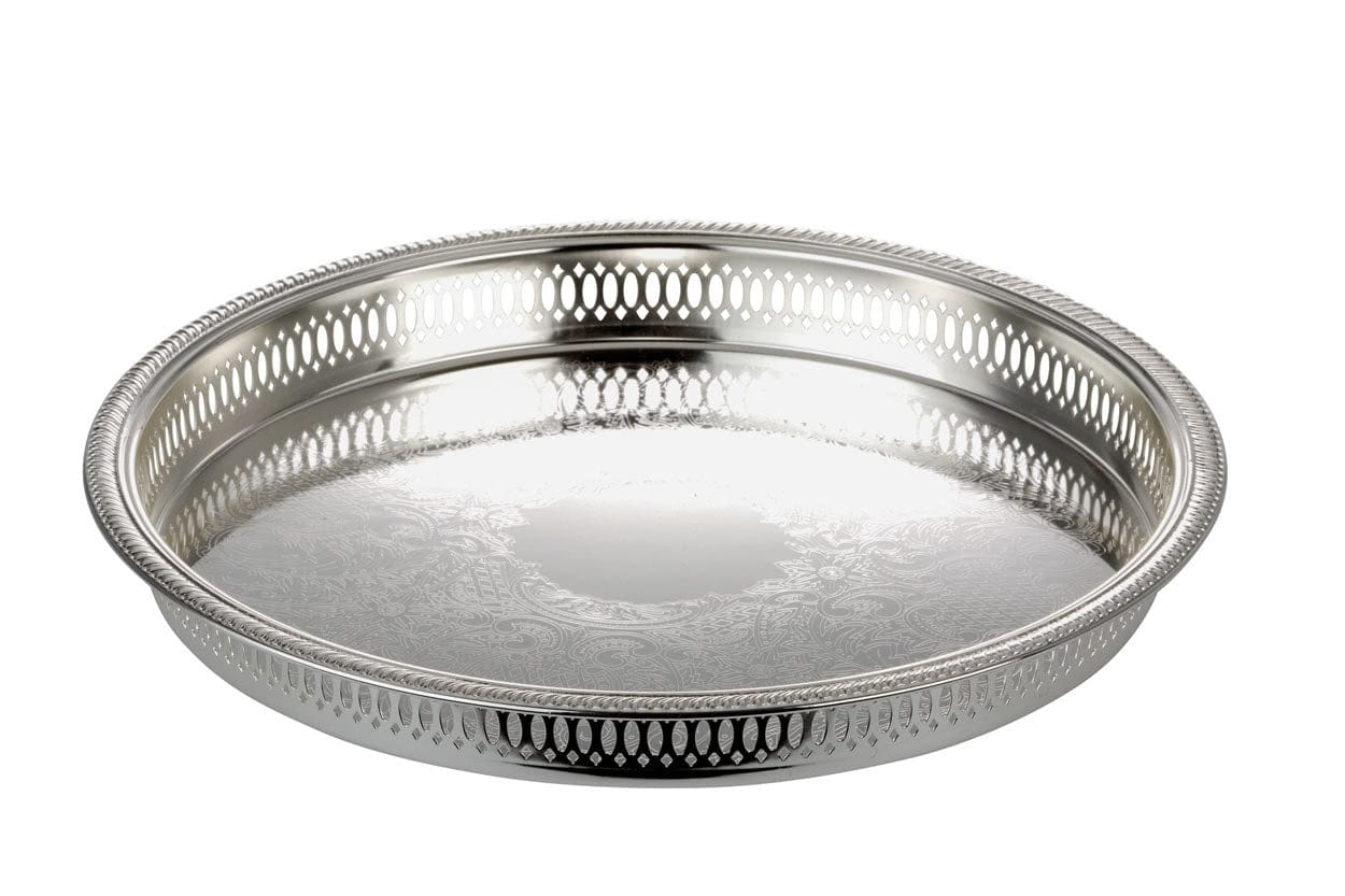 Tava pentru servire Embossed Round este perfecta pentru orice bucatarie. Cu un design simplu, dar modern, va aduce un plus de personalitate fiecarei mese. Alege combinatia perfecta pentru o prezentare reusita, rafinament la superlativ, completat de accente unice argintii!