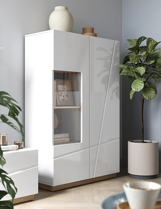 Vitrina Futura 05 se integreaza perfect in locuinta dumneavoastra oferindu-i o nota de eleganta. Interiorul casei dumneavoastra va fi admirat de cei care indragesc liniile bine definite, simplitatea formelor dar si functionalitatea acestora.