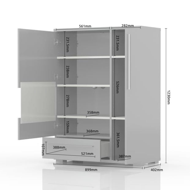 Sertare, Rafturi, Usi, LED, Inchidere cu Balamale